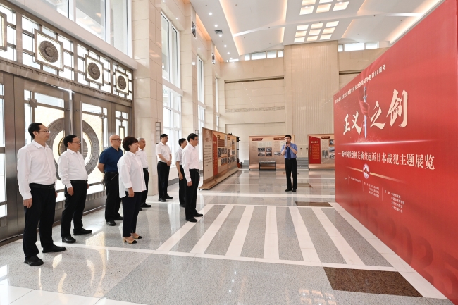 8月18日上午,正义之剑——新中国检察机关侦查起诉日本战犯主题展览开展,最高人民检察院党组书记、检察长应勇与最高检领导童建明、葛晓燕、刘炤、张雪樵、宫鸣、苗生明、滕继国一起观看展览。